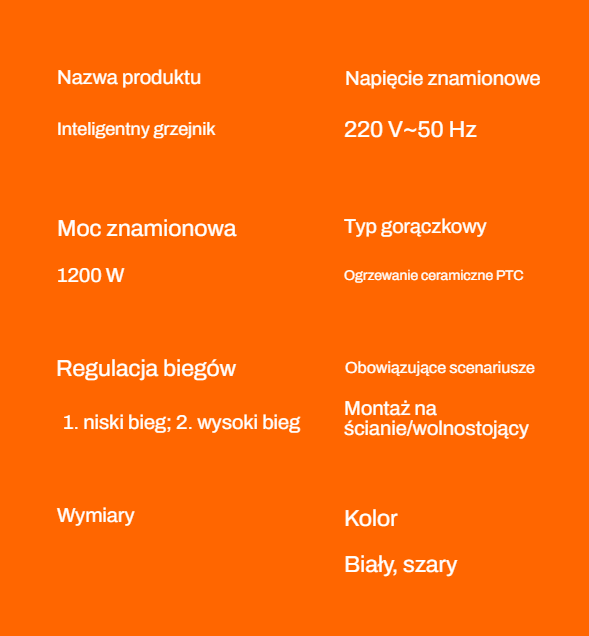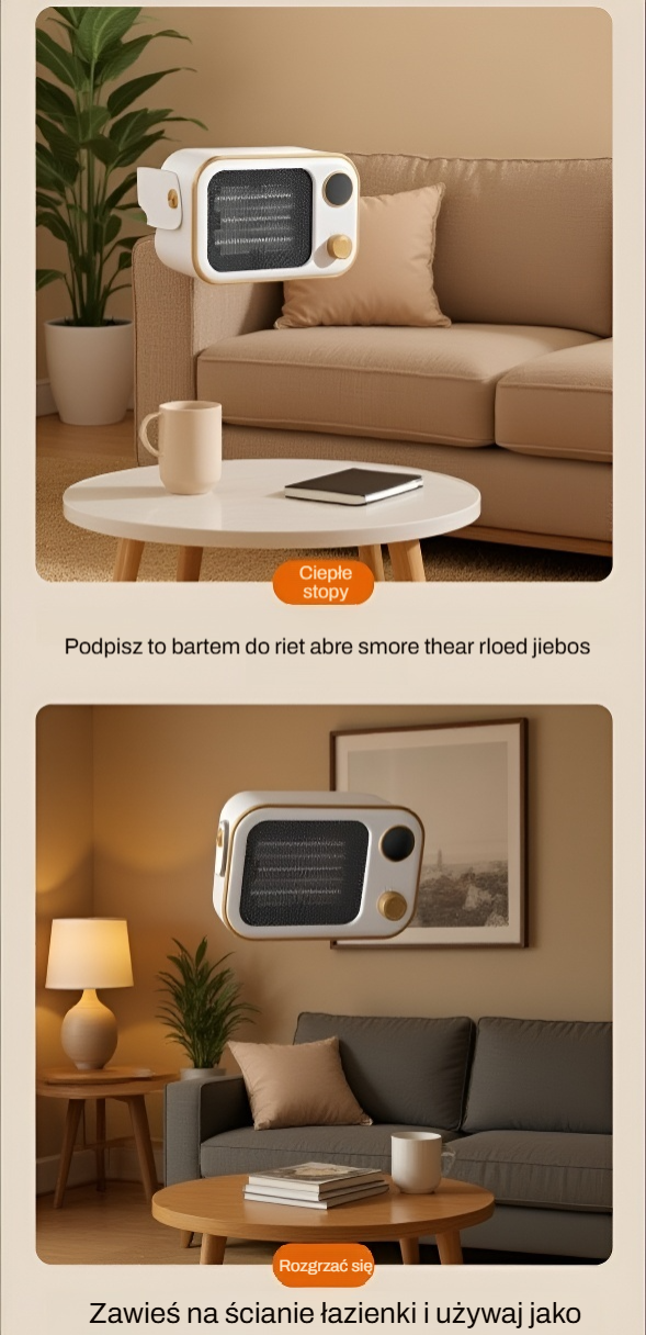 Ceramiczny grzejnik PTC naścienny, montaż bez wiercenia, cicha praca